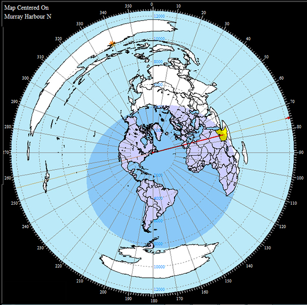 | SOUTH AFRICA | 120° 7465 mi | ||