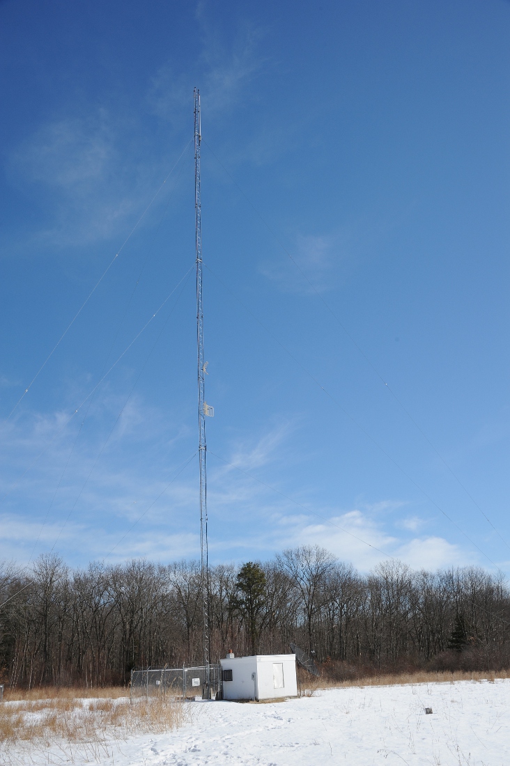 The WGHM transmitter site during spring flooding of the Nashua River (above), and photos of a Red-Tail Hawk that likes to perch on the antenna (below). 1590 WSMN Nashua is multiplexed into the same antenna under an FCC STA until a new directional transmitter site is constructed further west along the Nashua River.